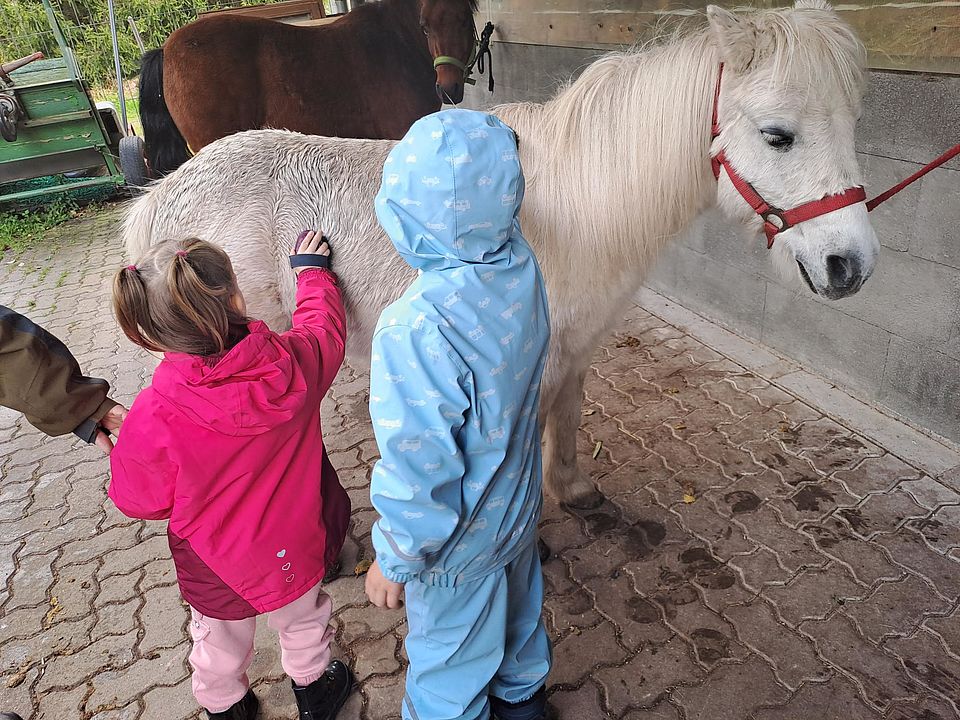 Der Besuch auf dem Herrenwiesenhof und das dortige Ponyprojekt in Kooperation mit der zertifizierten Reitpädagogin Sabrina Heidenwang-Fleig vom Team Pony Schule Freudenstadt war nicht das erste Angebot, das den Kindern der Frauenhausbewohnerinnen von Seiten des DRK als Träger der Einrichtung geboten wurde. Projekte in Zusammenarbeit mit der Musik-und Kunstsschule sowie einer Kampfsportschule in Freudenstadt haben in der Vergangenheit schon wiederholt dazu beigetragen, den Frauen und Kindern die Verarbeitung ihrer traumatischen Erlebnisse zu erleichtern. Auch das jetzige Projekt diente diesem Zweck. Zwei Gruppen mit je fünf Kindern und Jugendlichen nahmen in Begleitung der Mitarbeiterinnen des Frauenhauses daran teil. „Tiere haben eine therapeutische Wirkung auf Kinder, deshalb haben wir uns für dieses Angebot entschieden“, betont Frauenhausleiterin Carmen Graf. Die Kinder hatten an den beiden Nachmittagen die Gelegenheit, zunächst den Hof und die Ponyschule mit den Ponys, Pferden, Eseln und Kaninchen kennenzulernen, um sich im Anschluss daran voll und ganz den Tieren zu widmen. Sabrina Heidenwang-Fleig lehrte ihnen spielerisch und bewegungsaktiv die wichtigsten Regeln im Umgang mit den Tieren. Die Kinder durften die Ponys striegeln, ihre Hufe auskratzen, aufsitzen und sogar kleinere Runden mit ihnen reiten oder sie führen. Neben der Stärkung des Selbstbewusstseins beim -manchmal auch mutigen- Umgang mit den Tieren wurde den Kindern dabei auch Achtsamkeit, Wertschätzung und Respekt vermittelt. Teamwork war im Umgang mit den Tieren ebenfalls immer wieder gefragt. Ermöglicht wurde das Angebot aufgrund einer Spendenaktion des DM-Drogeriemarktes, von der das Frauenhaus profitiert hatte. Die vom DRK betriebene Einrichtung ist auf Spenden angewiesen, um den Frauen und ihren Kindern neben der Unterbringung auch solche „Unterstützungs-und Hilfsangebote“ zur Verarbeitung des Erlebten bieten zu können. „Uns ist das sehr wichtig weil wir auch sehen, dass es den Frauen und Kindern etwas bringt“, so Graf.