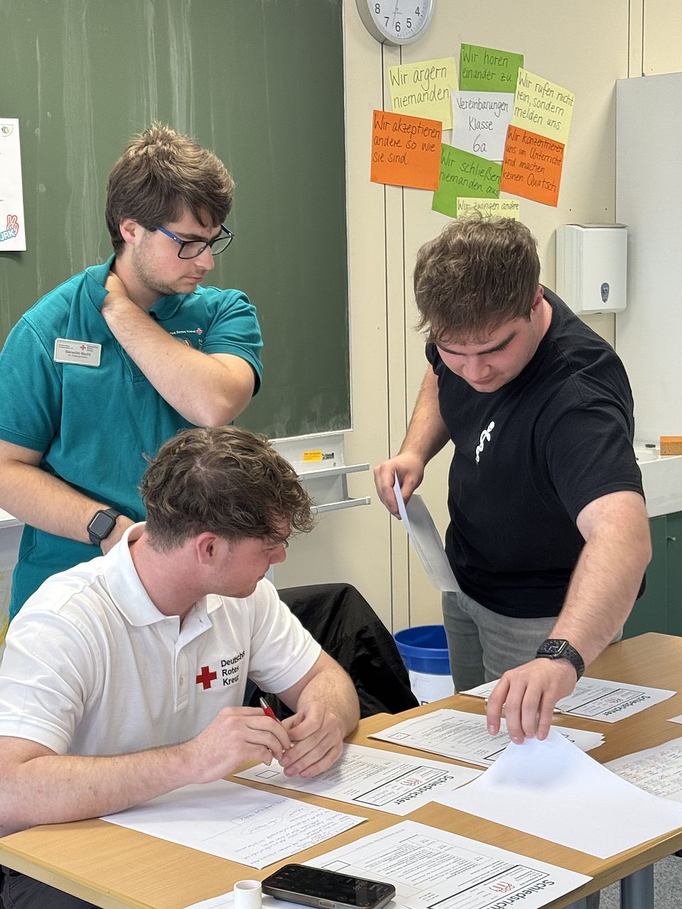 Pünktlich um zehn Uhr startete der mit Spannung erwartete Wettbewerb. Neben der praktischen Ersten-Hilfe und Notfallversorgung wurde dabei das klassische Rotkreuzwissens erfragt, es standen aber auch Sport und Spiel sowie kreative und soziale Themen und Aufgaben im Fokus. An jeder Station sorgten zwei Schiedsrichter für die Bewertung der erbrachten Leistungen, die ordnungsgemäße Dokumentation und Übermittlung der Ergebnisse. Daumen drückten die Betreuer und Jugendleiter aus den Ortsvereinen und begleitende Lehrer.