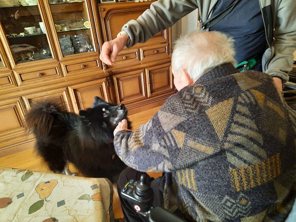 Ein Therapiehundeteam besteht aus einem ausgebildeten und geprüften Therapiehund und "seinem" Menschen. Sie arbeiten nach bestandener Prüfung rein ehrenamtlich. Sie besuchen pflegebedürftige Senioren, Menschen mit Behinderungen, Kindergärten, Schulen und andere Einrichtungen.